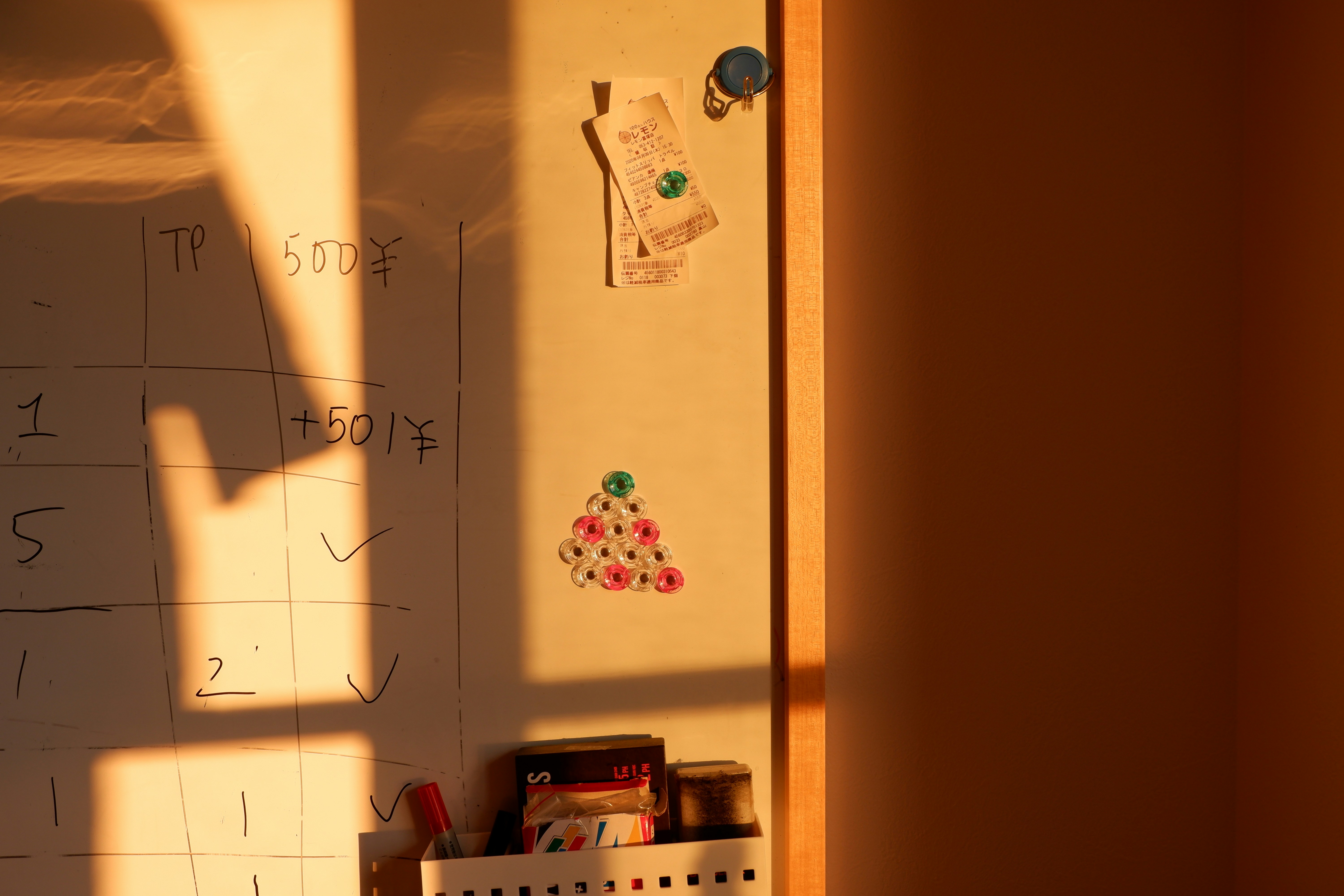 테이블, 의자, 벽면의 그림자는 경계가 뭉툭하고 옅게 표현.
